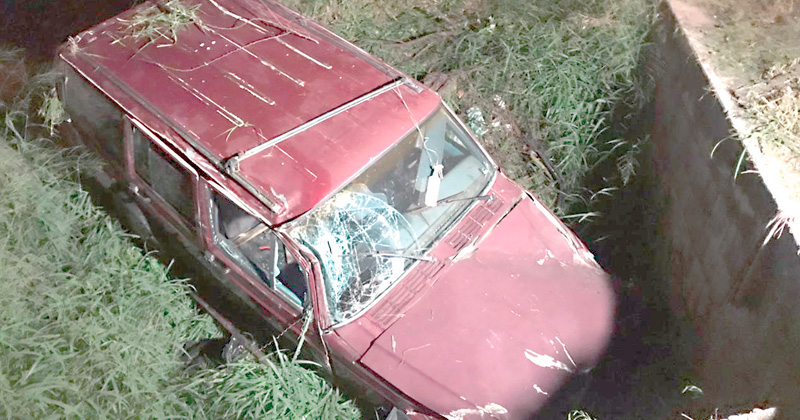 Caen con todo y camioneta en el fondo de un dren pluvial contiguo al Libramiento Naciones Unidas, presuntamente otra unidad y los golpeó, proyectándolos contra el canal de desagüe