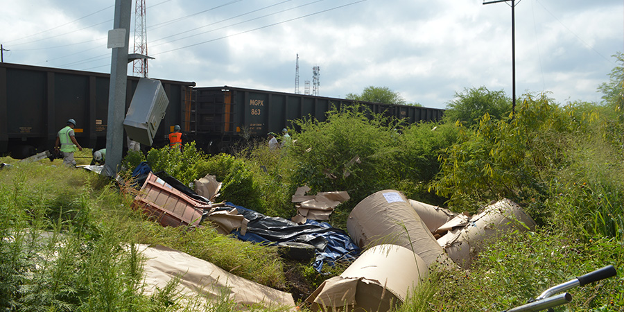 Operador de tractocamión de doble remolque se lleva el susto de su vida al ser embestido por el ferrocarril en el kilómetro 49 de la carretera a Monterrey