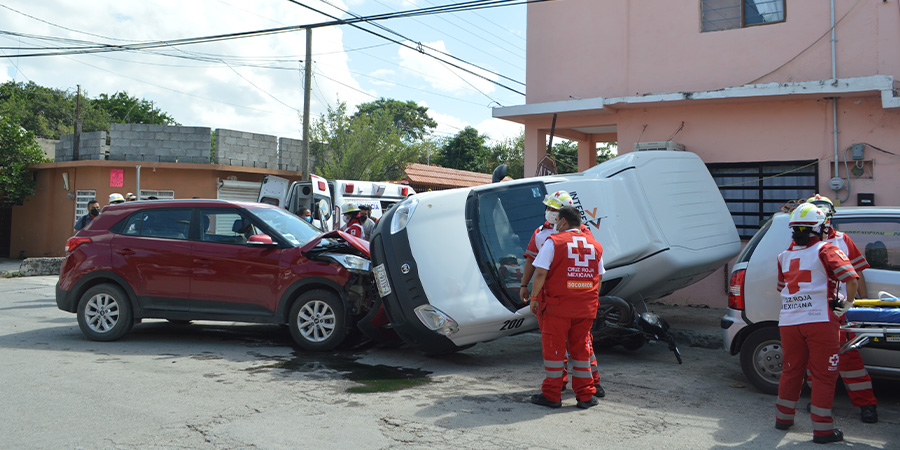 Una simple omisión de alto generó un percance vial que involucró a tres vehículos, y generó un saldo de dos personas lesionadas
