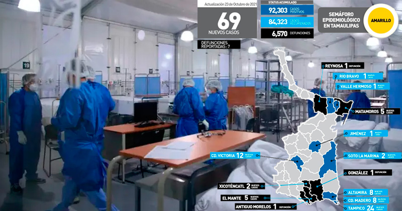 Reportan 69 contagios y siete defunciones en Tamaulipas