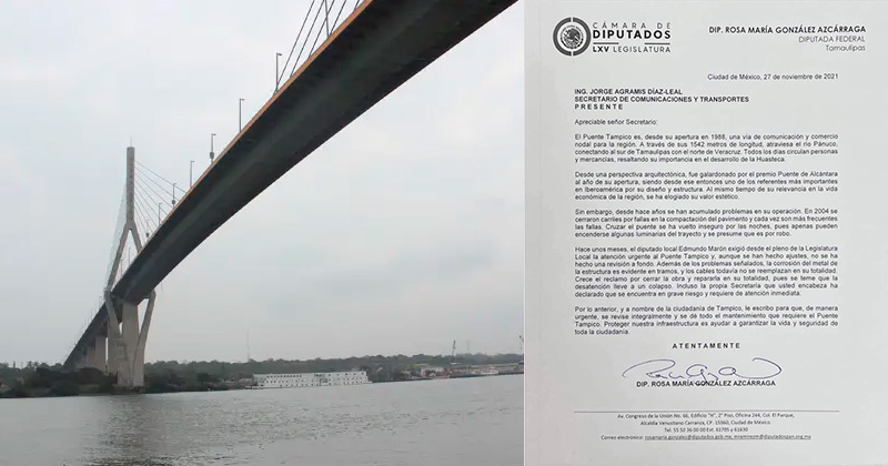 Pide Diputada a secretario de la SCT que se “tomen cartas en el asunto” del Puente Tampico