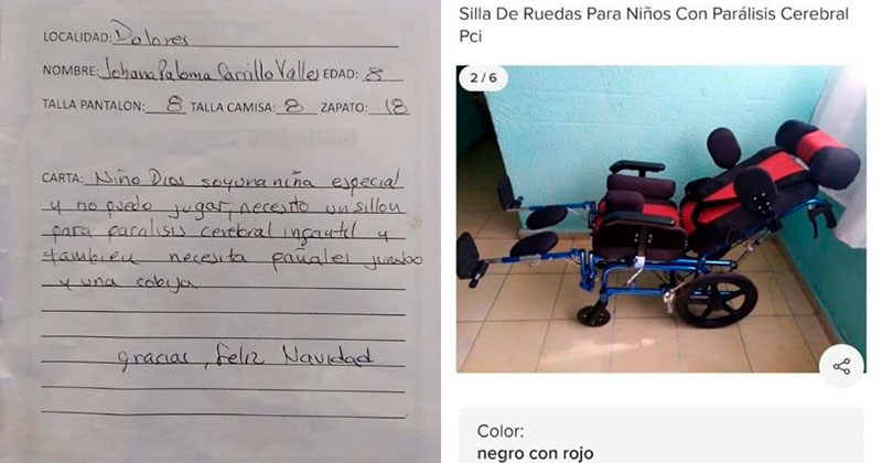 Niña indígena pide al Niño Dios una silla de ruedas para poder jugar