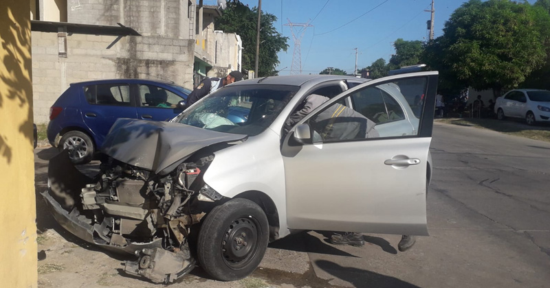 Uno de los carros acabó estrellándose en la barda de una vivienda