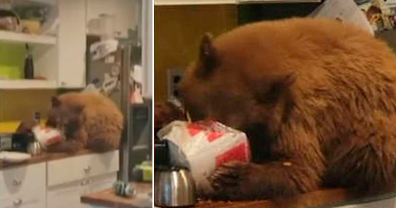 Llega a su casa y descubre a un oso comiendo KFC