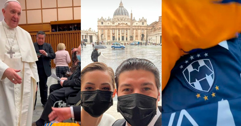 El gobernador de Nuevo León, Samuel García, acudió al Vaticano para entregarle unas playeras de los equipos regios al Papá Francisco