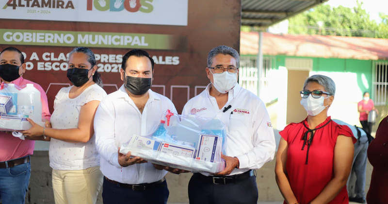 Entrega gobierno de Altamira kits sanitizantes a escuelas presenciales