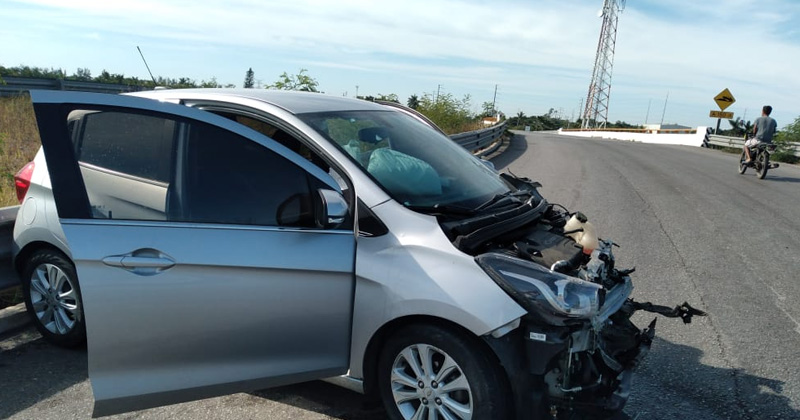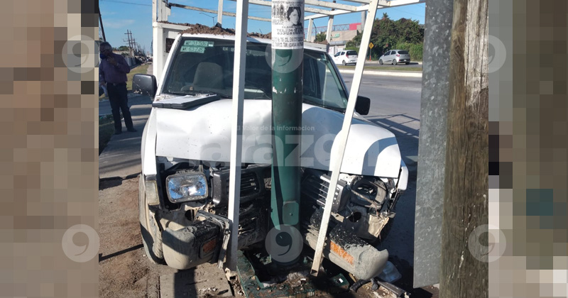 Debido al exceso de velocidad, el operador perdió el control del volante para luego subirse a la banqueta; resultó ileso