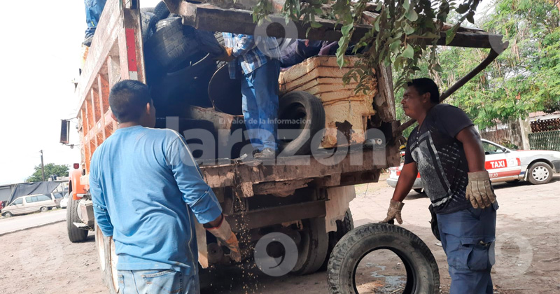 En este sector, con apoyo de camiones de volteo y con un gran esfuerzo físico de los trabajadores municipales se levantaron más de 10 toneladas de cacharros y llantas que son sin duda entornos adecuados para la proliferación del mosquito.