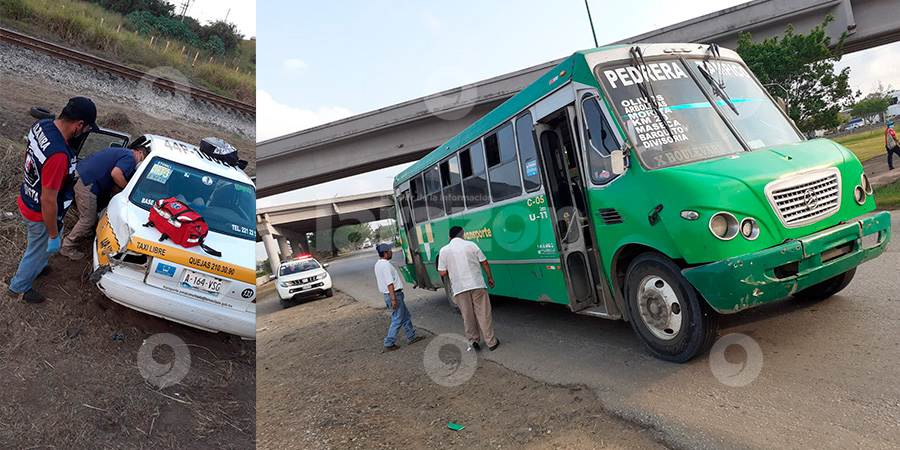 ALTAMIRA, TAMAULIPAS.- Dos pasajeros de un taxi resultaron lesionados en un accidente donde se vio involucrado un autobús.