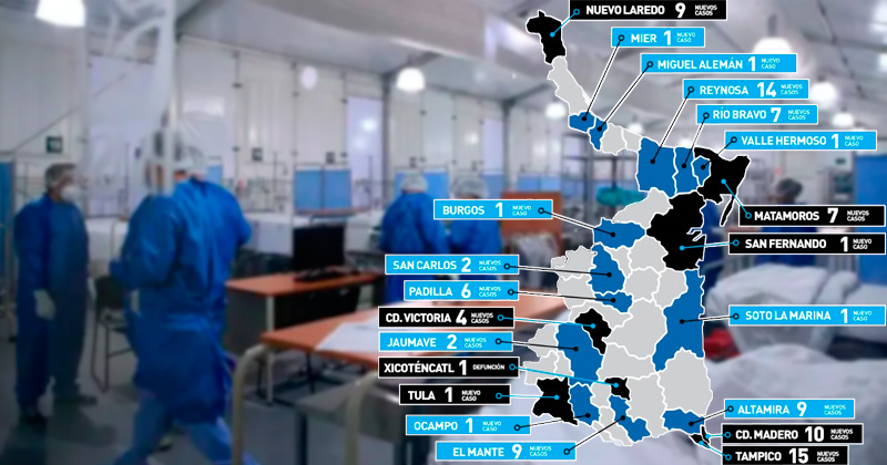 Suma Tamaulipas 102 contagios de COVID-19 y 8 defunciones