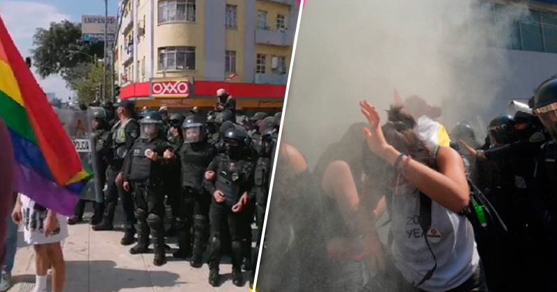 Denuncian el uso de gas lacrimógeno y que fueron encapsulados por mujeres policías.