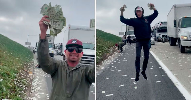 Llueve dinero en carretera de California; piden a conductores devolverlo
