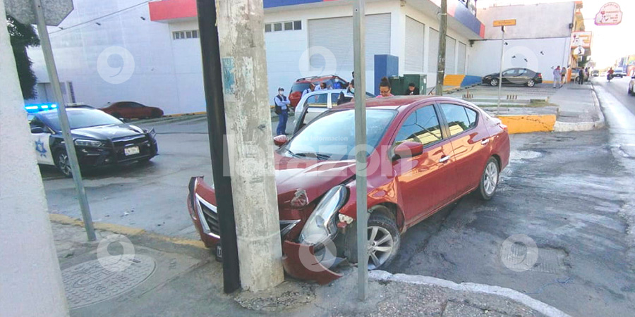 TAMPICO, TAMAULIPAS.- Contra un poste de concreto se estrelló un vehículo particular tras circular por la avenida Miguel Hidalgo en Tampico, la mañana del martes.