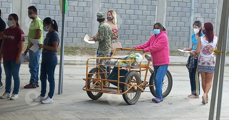 Doña Agustina Santos llegó a bordo de su triciclo para que su hija se aplicara la segunda dosis de la AstraZeneca.