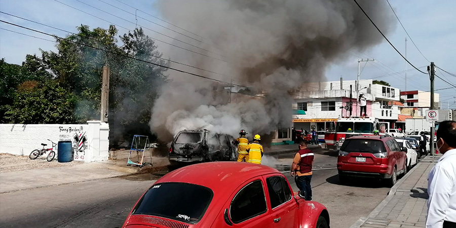 Intensa movilización por incendio de camioneta en Ciudad Madero