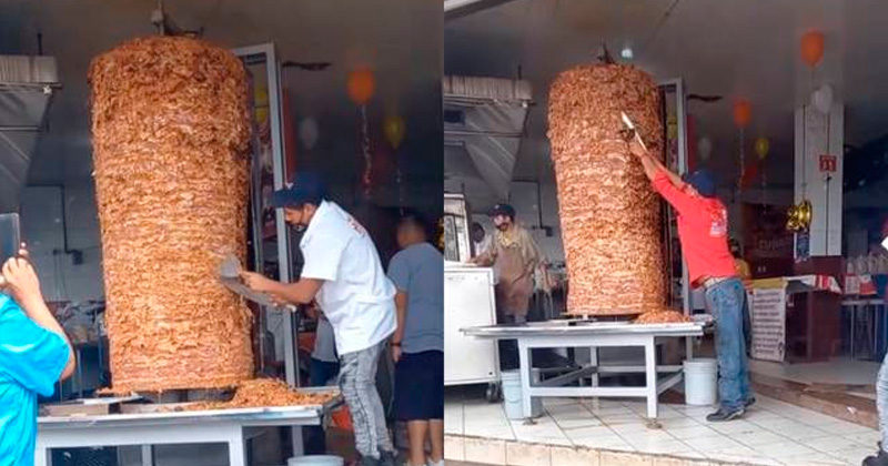 Taquería crea el trompo de tacos al pastor más grande la historia y ¡no es suficiente!