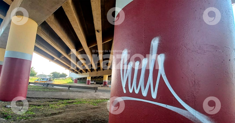 -Ni dos días duró pintado este muro del puente de Monte Alto.