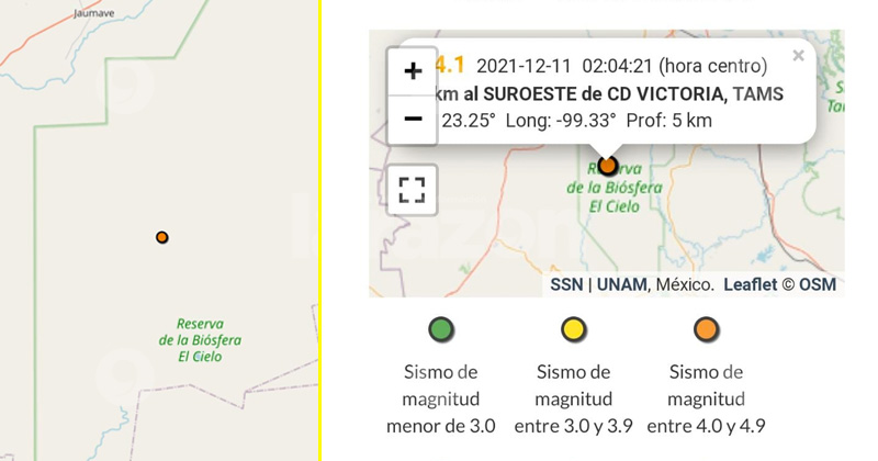 Su epicentro se ubico en el área de la Reserva de la Biosfera del Cielo en el municipio de Jaumave.