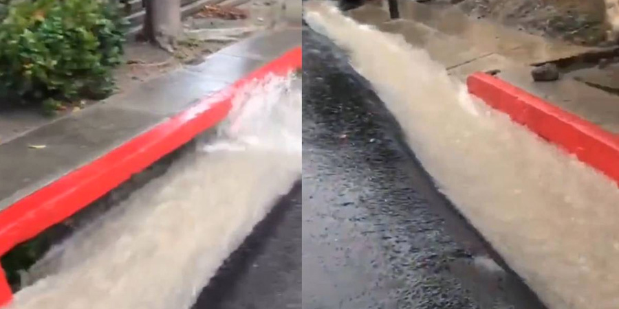 Por las fuertes lluvias en Baja California, la corriente hacia una coladera se habría tragado a una persona
