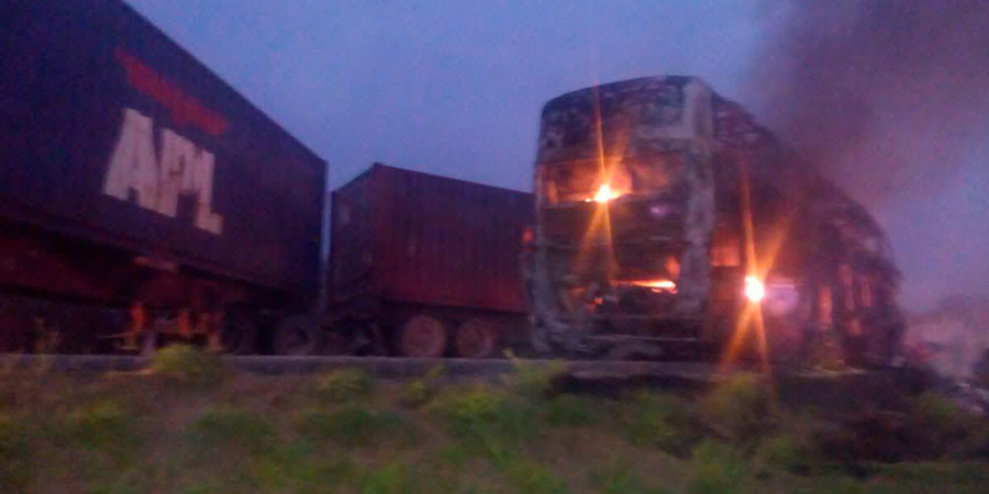 El percance ocurrió a las 06:00 horas y fue en el kilómetro 150 + 400 y en el participaron un autobús de línea foránea, una camioneta Chrysler tipo pacífica así como un tráiler de doble remolque.