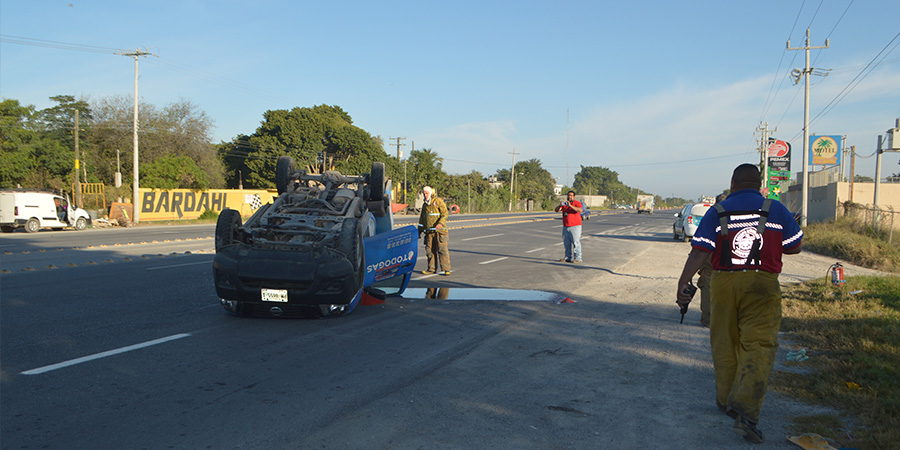 Debido al exceso de velocidad y la ponchadura del neumático provocó que el conductor perdiera el control hasta quedar con los neumáticos hacia arriba.