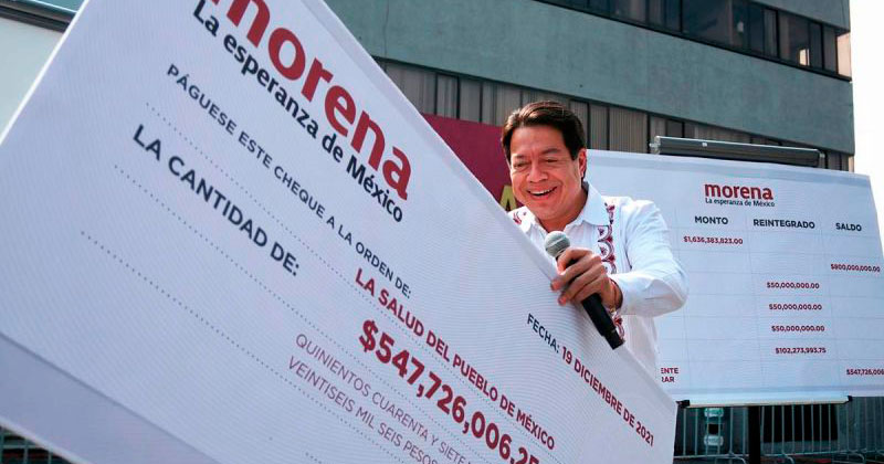 Morena entrega al INE cheque por 547.7 mdp para vacunas antiCovid