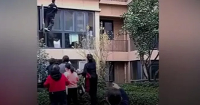 Repartidor escala edificio para rescatar a familia de un incendio