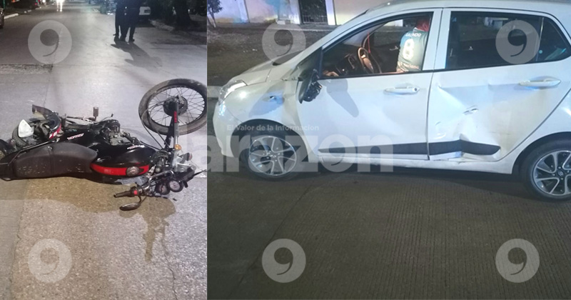 Una motocicleta Italika en color negro y un Chevrolet Spark blanco colisionaron en esa intersección.