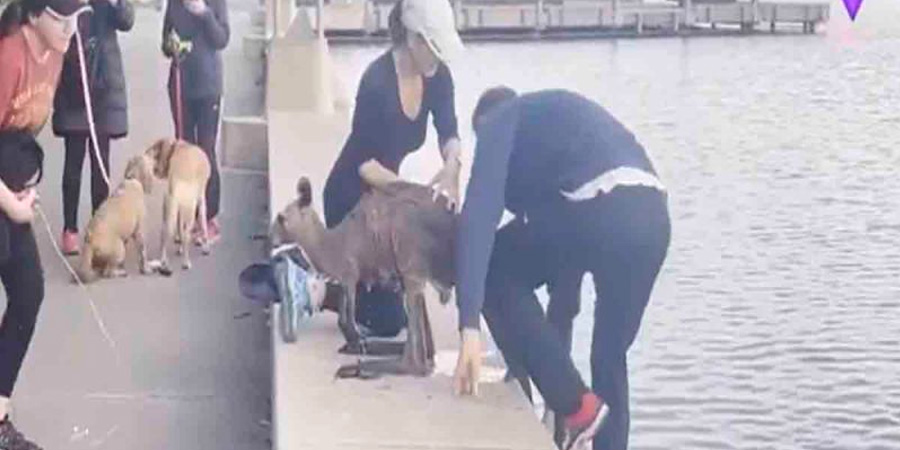 Se lanza a lago para salvar a un canguro de morir ahogado