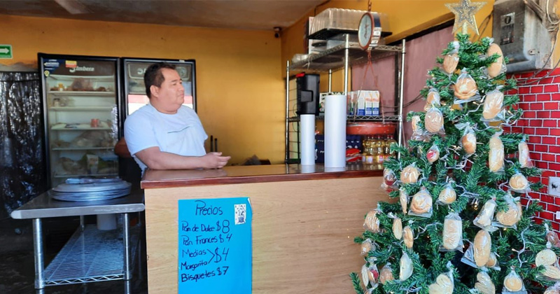 Gerardo Valentín, quien es panadero, informó que adornar de manera peculiar el pinito es para impulsar sus ventas, pues son panes que ellos mismos hacen.