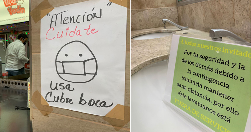 Refuerzan negocios medidas ante amenaza de Ómicron, hasta en el baño colocan letreros anti COVID