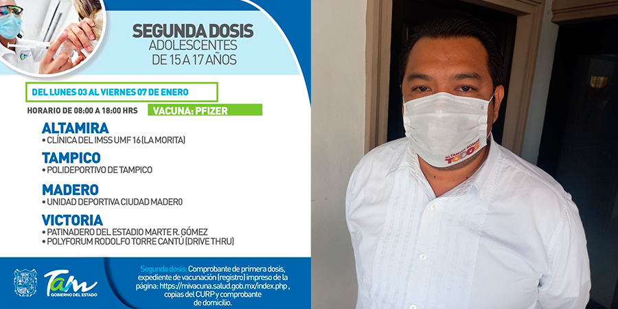 Segunda dosis de vacuna anti Covid a jóvenes de 15 a 17 años en Altamira