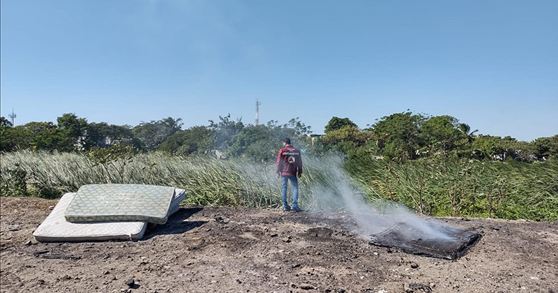 Personal de Protección Civil y bomberos acudieron a un incendio de basurero clandestino, ya que vecinos temían que se extendiera hasta las casas