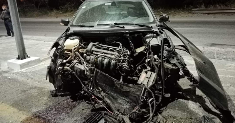 El conductor manejaba a exceso de velocidad de sur a norte y al tomar la curva perdió el control, primero chocó.