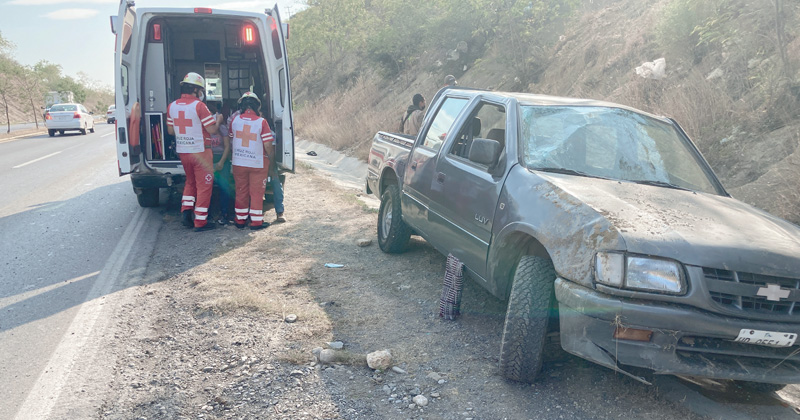 Una pareja de novios, fueron trasladados a la clínica del Imss, luego que volcaron la camioneta donde iban, al evitar chocar un vehículos que se les atravesó
