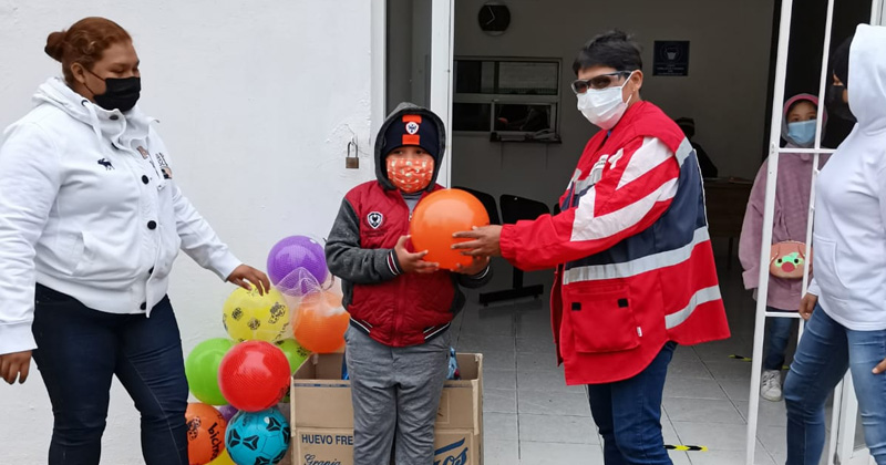 Regala Cruz Roja juguetes a pequeños