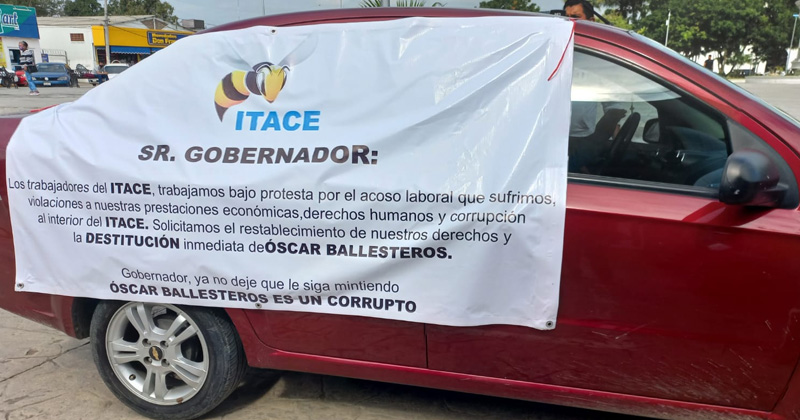 Protestan trabajadores del ITACE Altamira; piden destitución del director general
