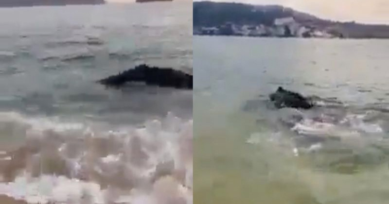 Un grupo de turistas grabó frente a la playa Condesa de Acapulco el momento en que una ballena bebé estuvo a punto de quedarse varada en la arena.