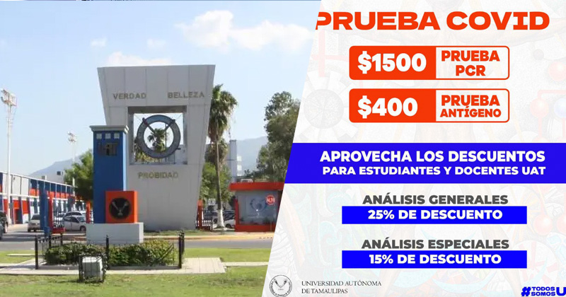 Otorgarán descuentos en pruebas PCR a los estudiantes de la UAT