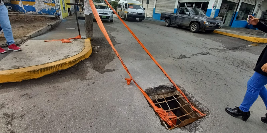 Se trata de la alcantarilla localizada en la calle Quintero y Mina, justo donde se encuentra la base de taxis Santiago Apóstol