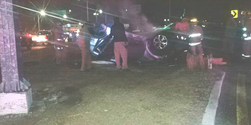 Camioneta tumba palmera y se vuelca en bulevar de Tampico