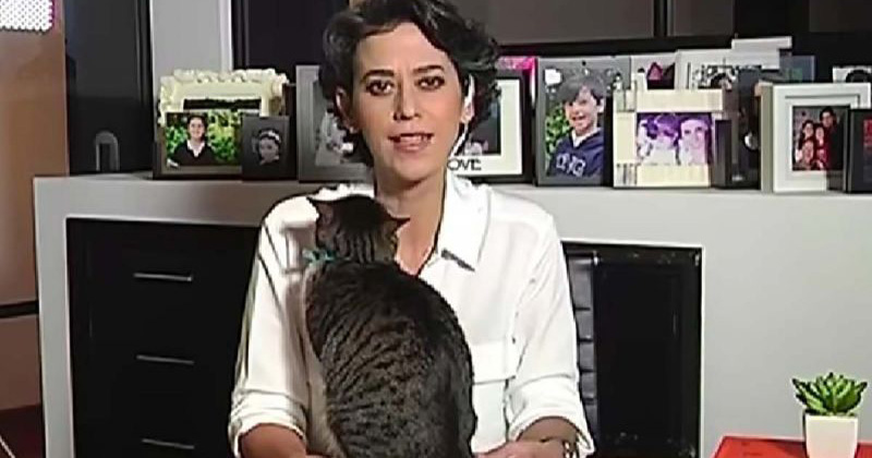 La aparición de este adorable felino ocurrió durante la transmisión de Arriba Bogotá, un noticiero conducido por la periodista Sandra Vélez