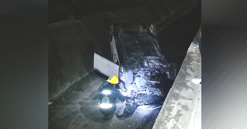 Carro termina volcado en canal pluvial