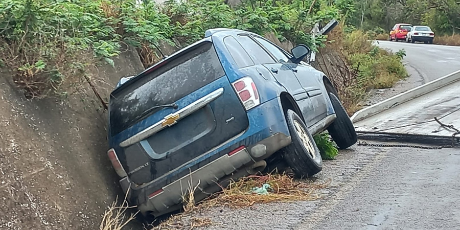 Camioneta se sale del camino y termina sobre muro de contención; familia sale ilesa