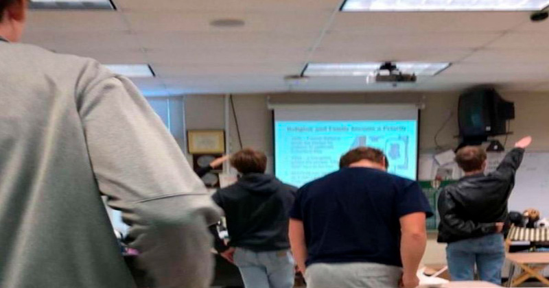 Imagen muestra a maestro de secundaria enseñando saludo nazi ante bandera de EU