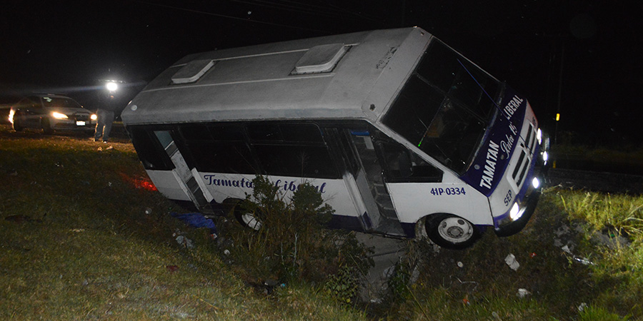 La unidad quedó en posición inclinada y a punto de volcar, dos pasajeros que sufrieron lesiones , fueron ingresados a un centro médico