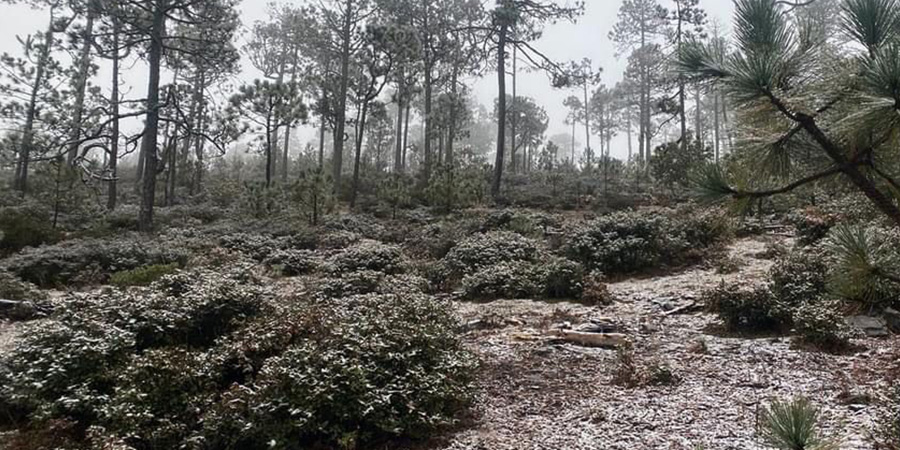 Ayer usuarios de redes reportaron que cayó nieve en el ejido la Joya de Miquihuana, pronostican más heladas para este día y para el jueves próximo