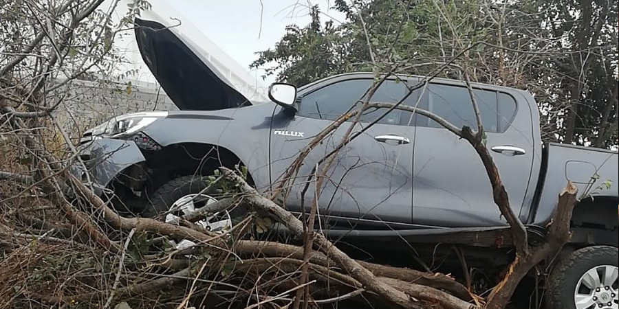 Camioneta se sale del camino en Jardines de Arboledas en Altamira