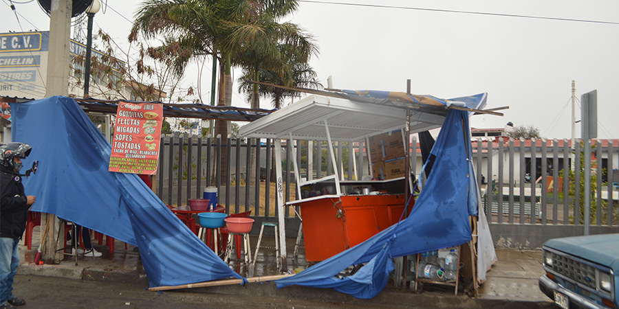 Una pesada unidad se le bota la palanca del freno y de reversa golpea y vuelca un puesto de gorditas instalado frente al Hospital Infantil
