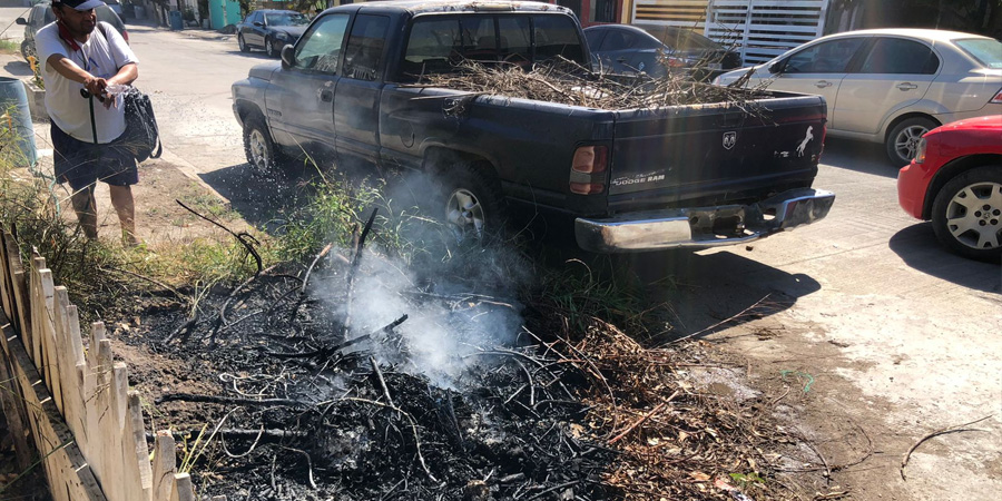 Quema de basura daña camioneta en Altamira